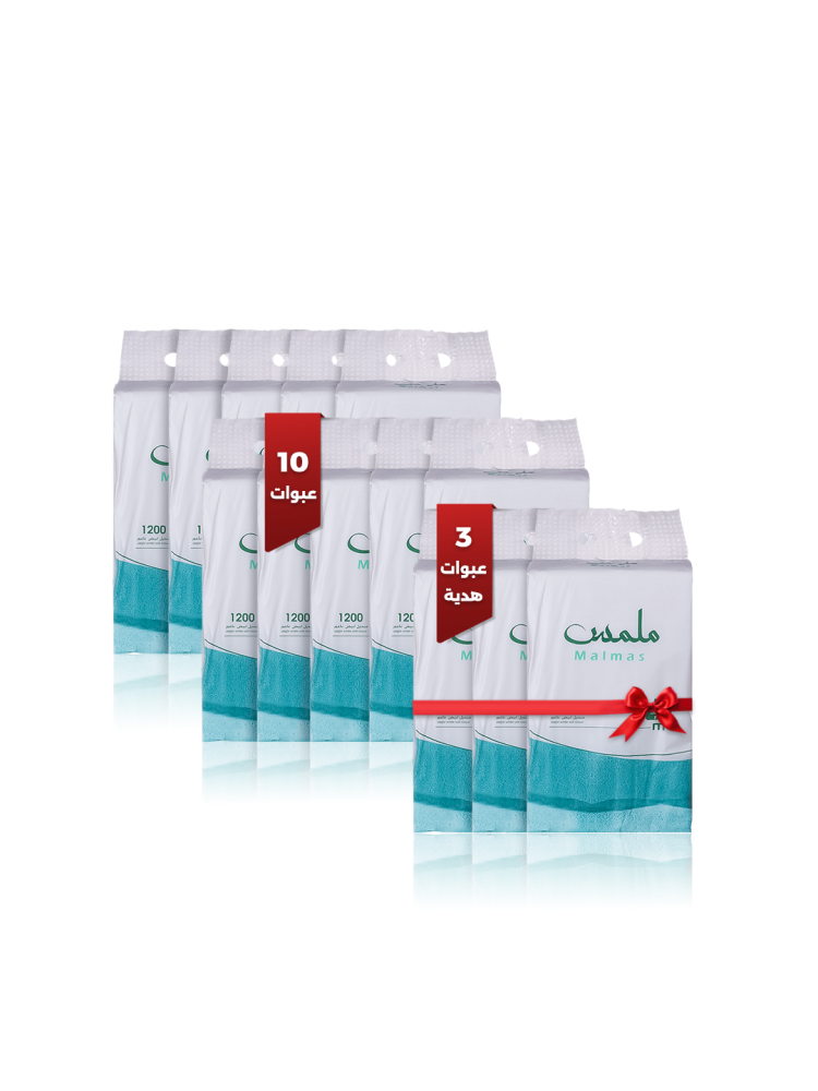 بكج مناديل ناعمة 1200 ملمس – عرض 10 عبوات + 3 هدية